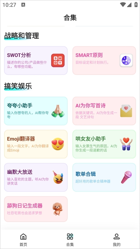4、当然,要是你想生成更多类型的内容,只需点击“合集”选项,里面能满足你多方面的需求。