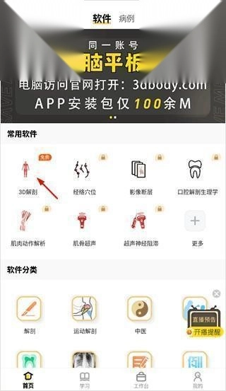 1、首先打开3dbody解剖软件,点击3d解剖;