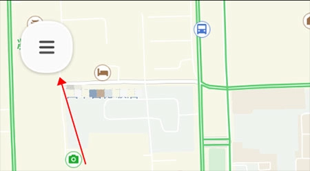 1、首先打开腾讯地图车机版,进入软件之后,点击左上角的三条杠选项;