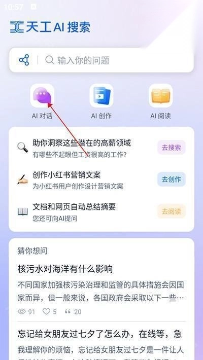 2、点击“AI对话”。
