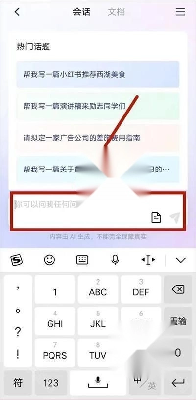 3、在输入框中输入你的问题。