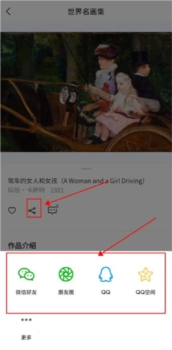 可以对名画作品进行分享,能够分享到微信朋友圈或者分享给好友