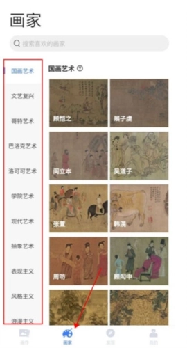6、我们还可以点击画家,在左侧有各种风格可以选择