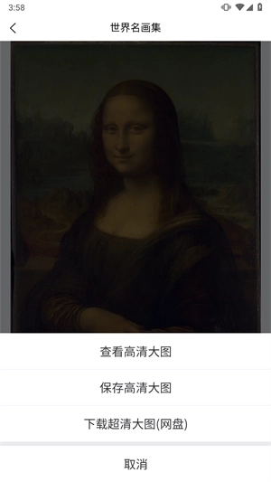 可以将名画的高清大图至本地,以后就能作为你的手机壁纸了