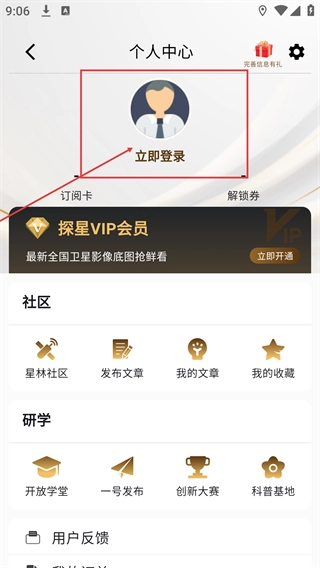 2、进入个人中心页面后,点击【立即登录】按钮,进入账号登录操作界面。