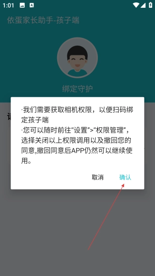 4、进入扫码页,对准【二维码】完成孩子端绑定操作。