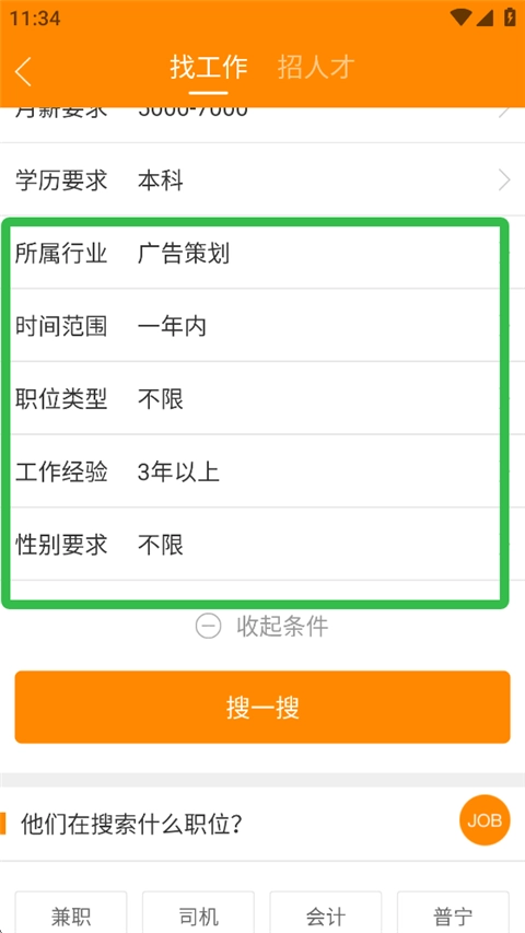 2、输入职位相关的关键词,再结合自身实际情况挑选合适的职位,同时选定期望的工作地点和月薪标准等信息。
