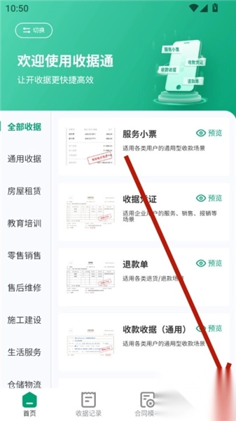 5、模板功能:收据通支持将所需的合同模板一键保存至本地文件,方便用户随时调用与管理。