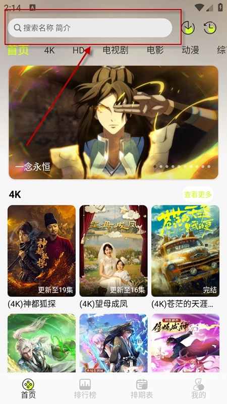 1、在本站安装打开软件,在首页顶部搜索栏输入剧名或关键词,找到影片后播放。