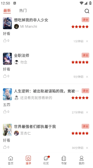 3. 点击页面下方的‘漫评’,即可看到不同漫画的评价信息;