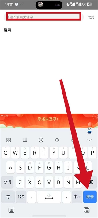 3、在搜索界面的输入框中填写想要查找的关键词,输入完成后点击搜索。