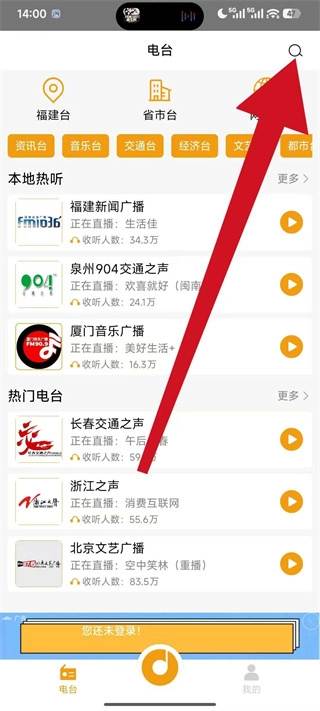 2、在电台主页面的右上角,点击搜索,进入电台搜索界面。