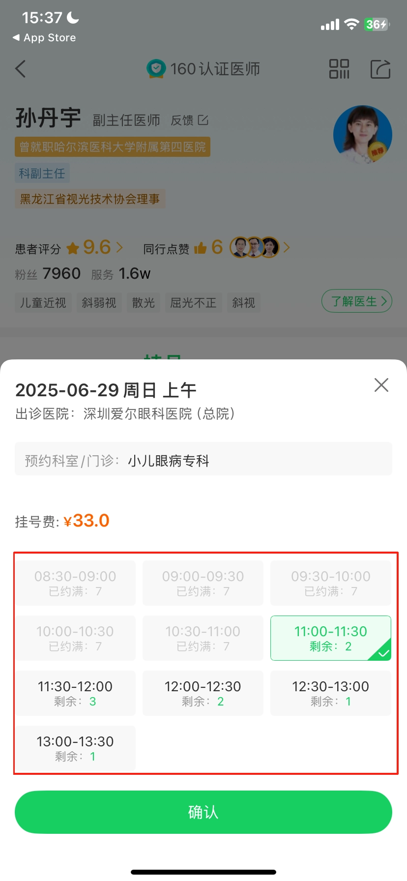 6、选择好具体的挂号时间后点击【确认】