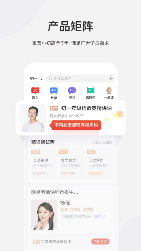 小学、初中全学科在线直播课,教师团队教学经验丰富,课程体系完整;