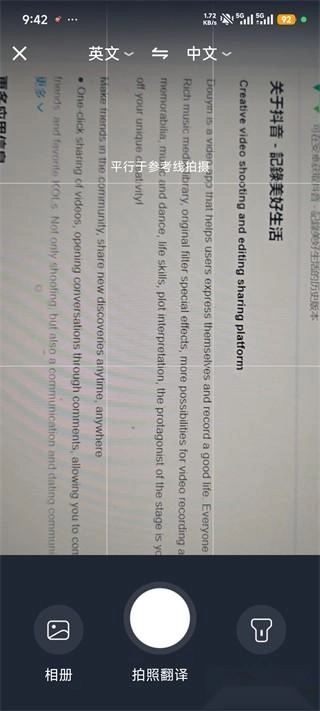 1、拍照翻译:借助拍摄图片或识别屏幕文字来完成翻译,可用于阅读外文资料、查看路标、解读菜单等场景。