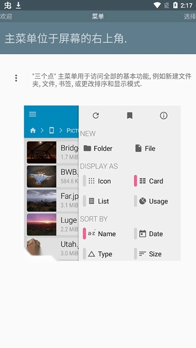 3、文件选择可通过水平滑动操作,也可借助操作栏中的“+”号按钮来完成。