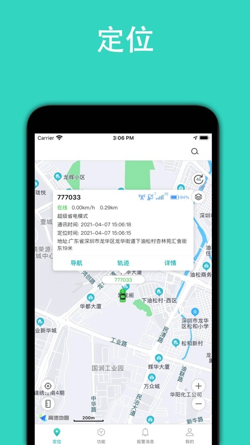 ·实时定位功能:用户可通过地图查看车辆的实时位置,同时也能获取车辆的详细定位信息,包括经度、纬度、定位时间、行驶方向等内容。