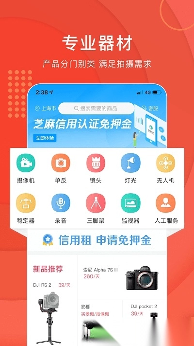 咔么租赁是专注于影视器材共享租赁的专业平台,提供品类齐全的专业设备租赁服务,涵盖单反相机、镜头、摄像机、航拍无人机、运动相机、三轴稳定器、VR全景设备、直播套件、影视灯光、录音话筒及轨道摇臂等。该平台致力于助力摄影爱好者与影视从业者降低创作成本,让更多人能便捷使用专业设备,畅享拍摄乐趣。