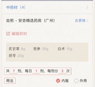 ● 可以删除和修改添加过的药材,同一种药材仅能添加一次。