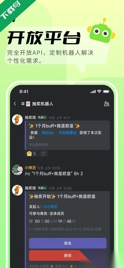 5. 机器人:提供众多由爱好者开发的、功能各异的机器人助手。