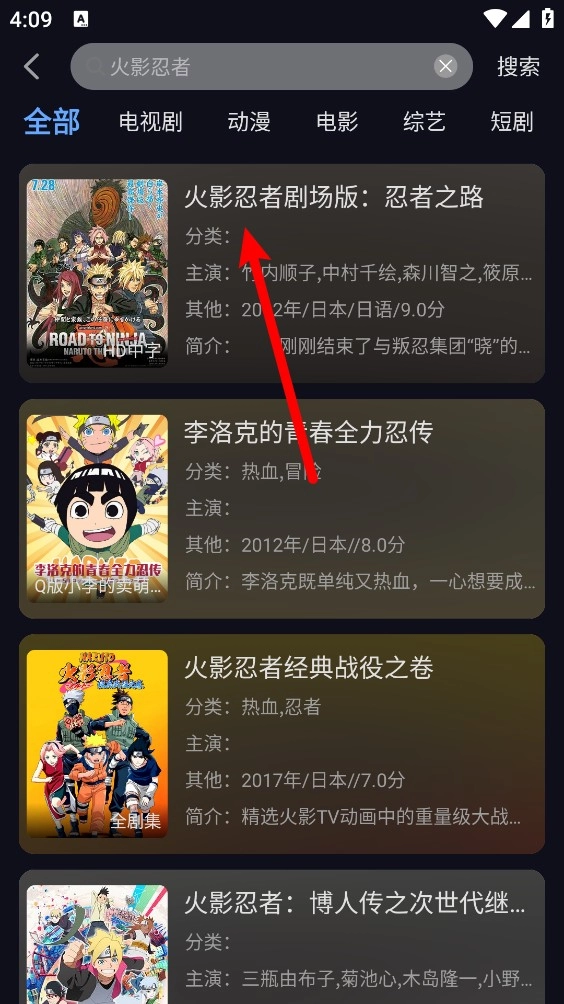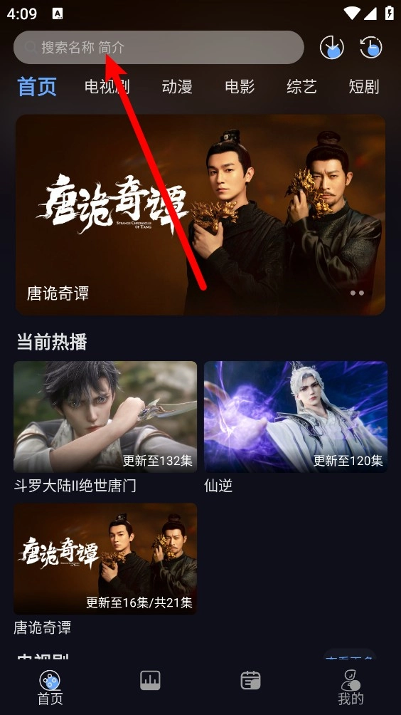 2、如图所示,输入需要投屏的剧集名称进行搜索