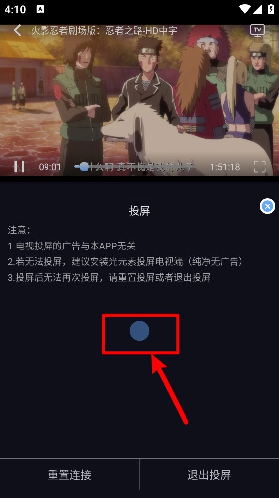 4、按照图中的指示,搜索并连接投屏设备,待连接成功后,就能启动投屏播放功能了。