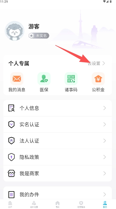 2、在个人页面找到并点击“去设置”。