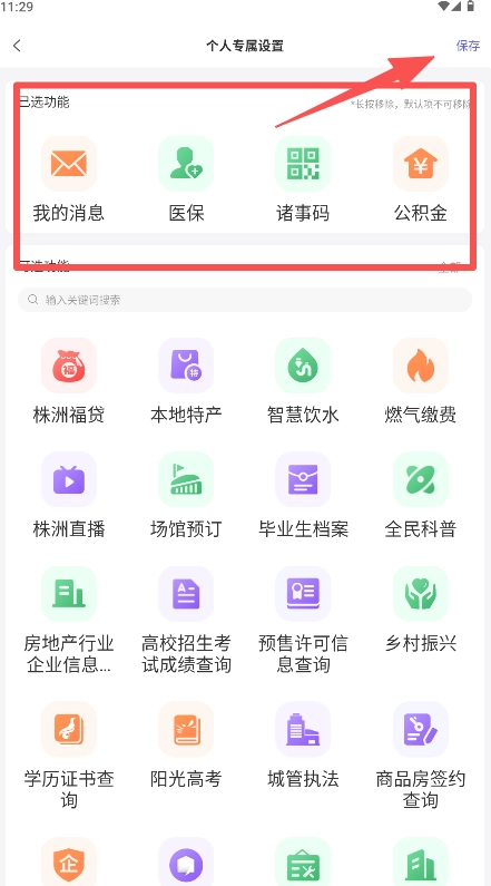 1、支持功能栏的高度个性化定制,用户能够从可选功能里自主添加医保这类高频服务。