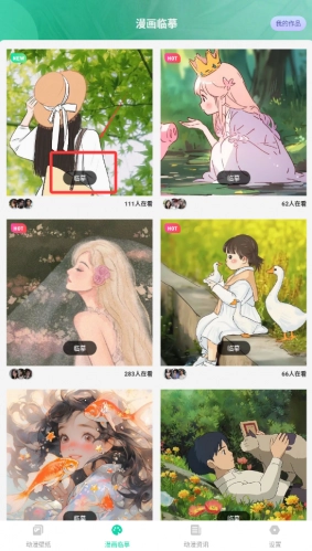 2、在“漫画临摹”界面选择自己喜欢的作品。