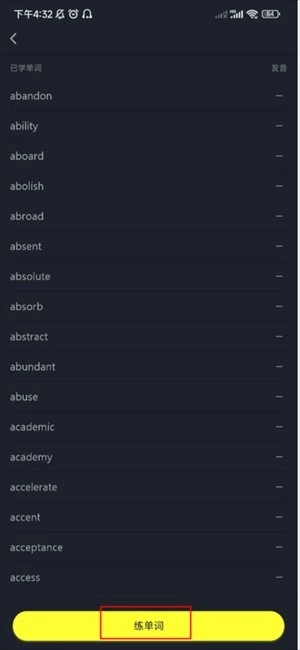 3、在练单词页面底部,点击练单词按钮即可。