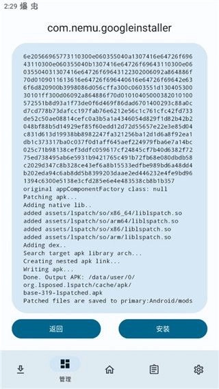 8、找到之前设置好的文件夹,点击修补的apk文件即可。