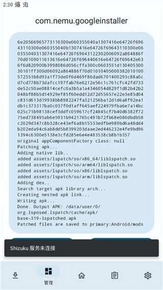 7、此时显示Shizuku服务未连接,这个时候卸载本地的应用。