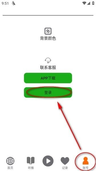 软件需登录账号才能使用,点击右下角的“账号”按钮,选择“登录”选项;新用户请自行完成注册。