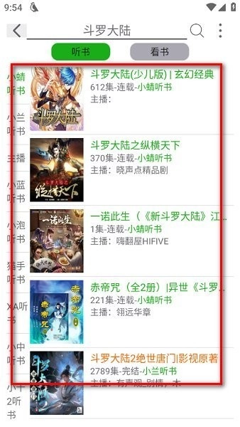 登录成功后,“首页”就会出现内容,在最上面的搜索框可以搜索书名或者主播;