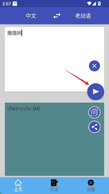 1. 启动老挝语翻译软件,输入需要翻译的文字,点击播放按钮就能完成翻译操作