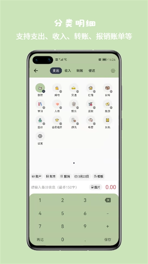 2、隐私安全:借助指纹、密码或人脸识别功能,能够直接进入记账页面。