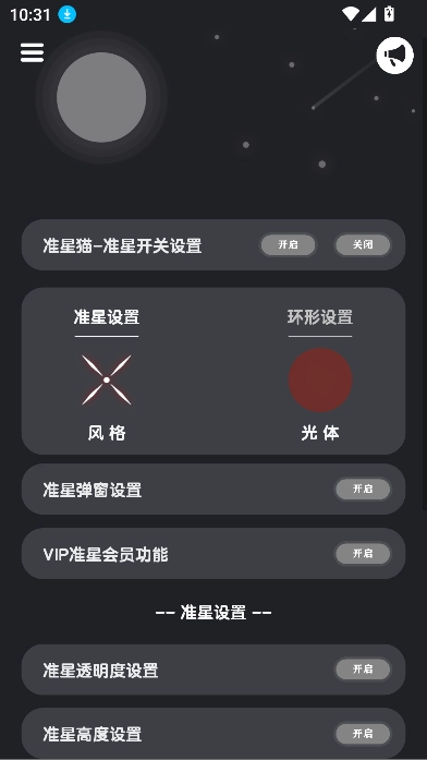 3、在准星开关功能的右侧点击“开启”以激活该功能。