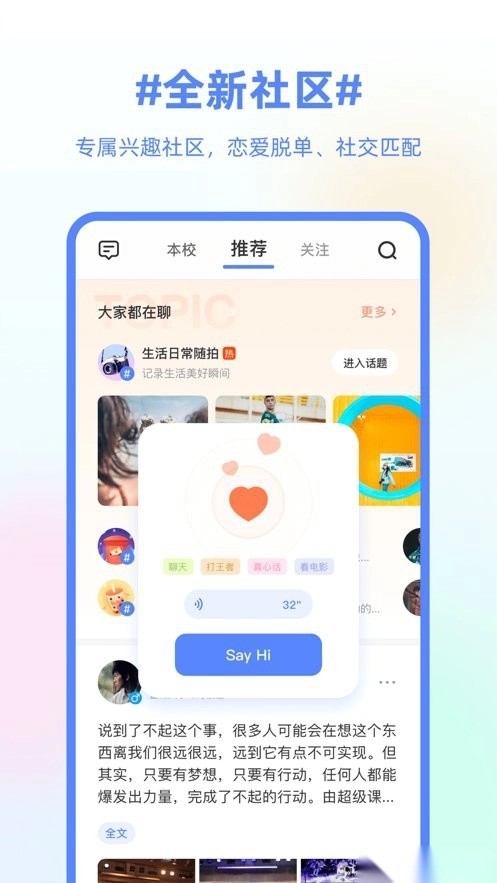 热闹的大学生兴趣交友社区,帮你捕捉更多小伙伴