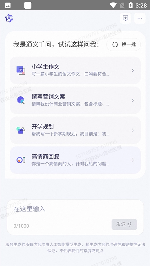 2、进入通义千问页面后,你可以通过提供关键词,让它生成你想要的文章内容。