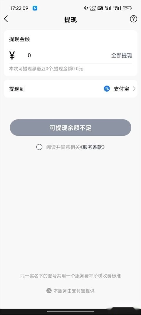 5、在提现方式中选择支付宝,确认即可完成提现。