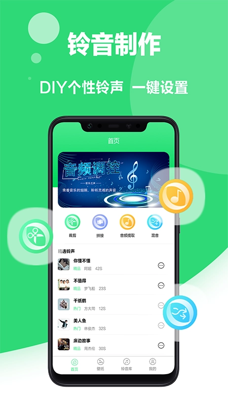 4.音乐剪辑:支持音乐剪辑,合并,混音等高级功能,轻松玩转铃声,音乐。