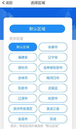 2、如果区域内没有自己所属地市,请选择“默认区域”。