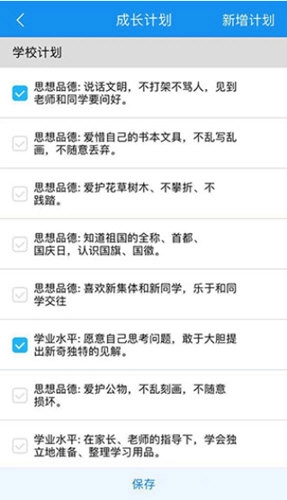 2、进入学校成长计划库界面后,学生可从中挑选合适的计划,直接添加为个人成长计划,点击【保存】按钮即可完成操作。