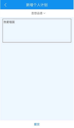 3、学生也可自主制定个人成长计划,点击【新增计划】后,需分别围绕思想品德、学业水平、身心健康、艺术素养、社会实践这五个方面制定相应计划,完成后提交即可。