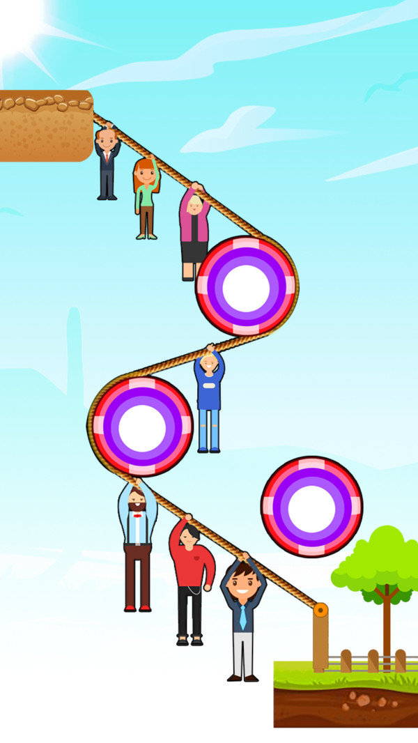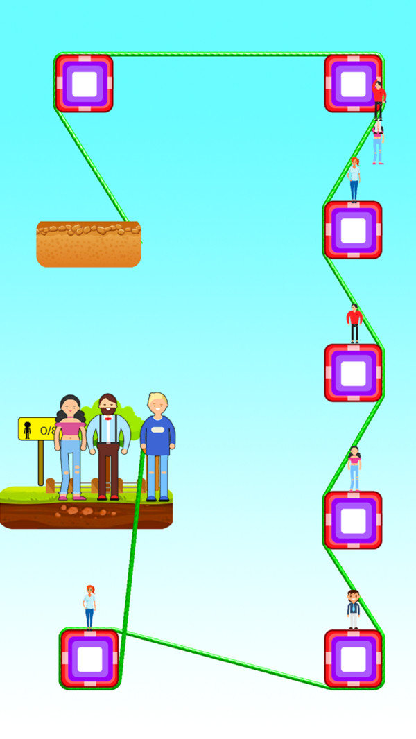 玩家只需要使用那些不同的绳索来帮助自己顺利的拯救更多的小人们;