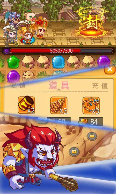 玩家可通过消除代表唐僧师徒5人的元素或技能球来通关关卡。