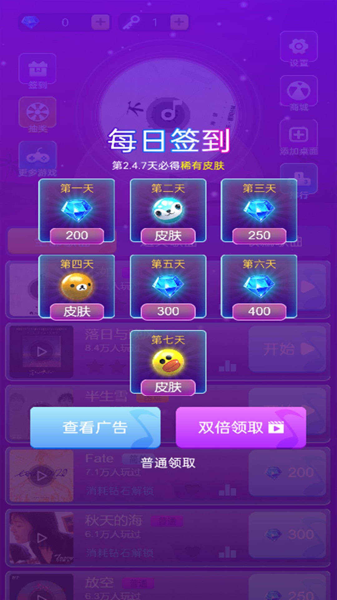 所有内容都免费提供给玩家,你只需要用金币来买皮肤,歌曲太少是一个缺陷。