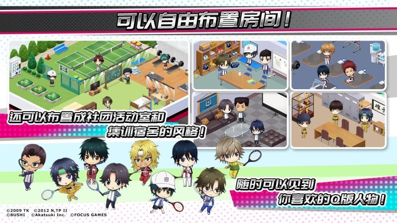 角色阵容豪华登场!游戏内大量收录玩家耳熟能详的新网球王子系列本站角色。玩家们除了可以搭配自己喜爱的角色组成队伍外,还有机会一窥每个角色的网球绝技及各式各样的特殊造型。