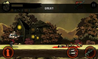 狂怒僵尸是一款血腥风格的横版跑酷/射击游戏。成群的僵尸出没四方,杀死它们见到的一切活物。你的脚步永不停歇,你必须杀出一条血路。你不光要剿灭面前的僵尸,还要小心脚下无尽的深渊,更有巨型Boss挑战你杀戮能力的极限!合理的升级路线选择和过人的操作技术会帮助你走的更远。