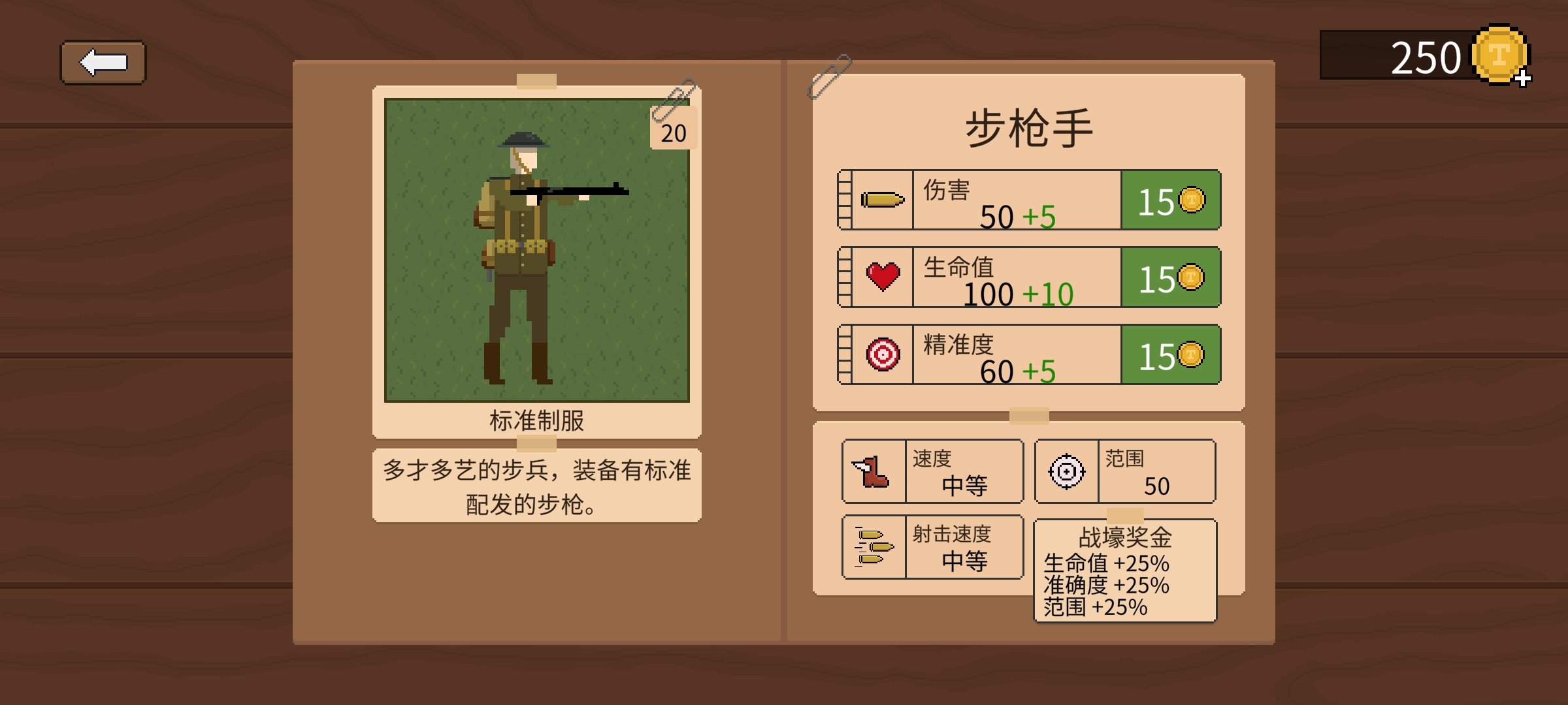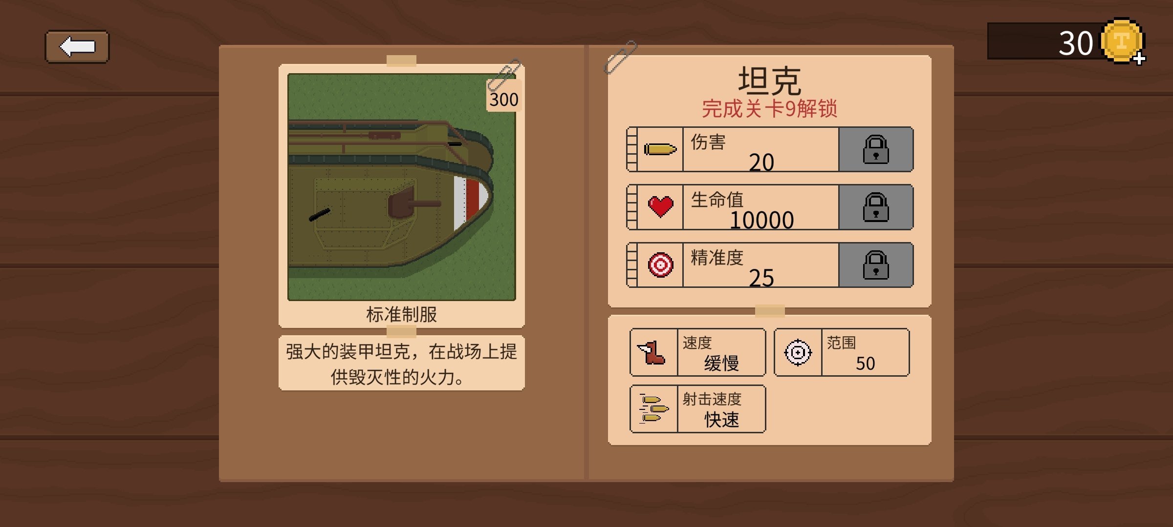 一款非常有趣的像素射击游戏。玩家将在游戏中扮演军队指挥官的角色。你将选择任意国家的军队参加,并使用自己的策略为你的国家的军队赢得胜利。